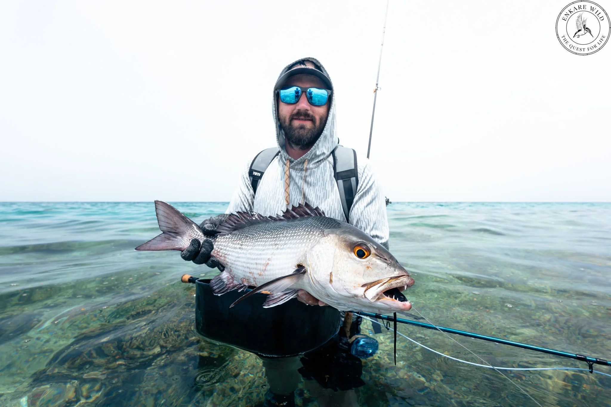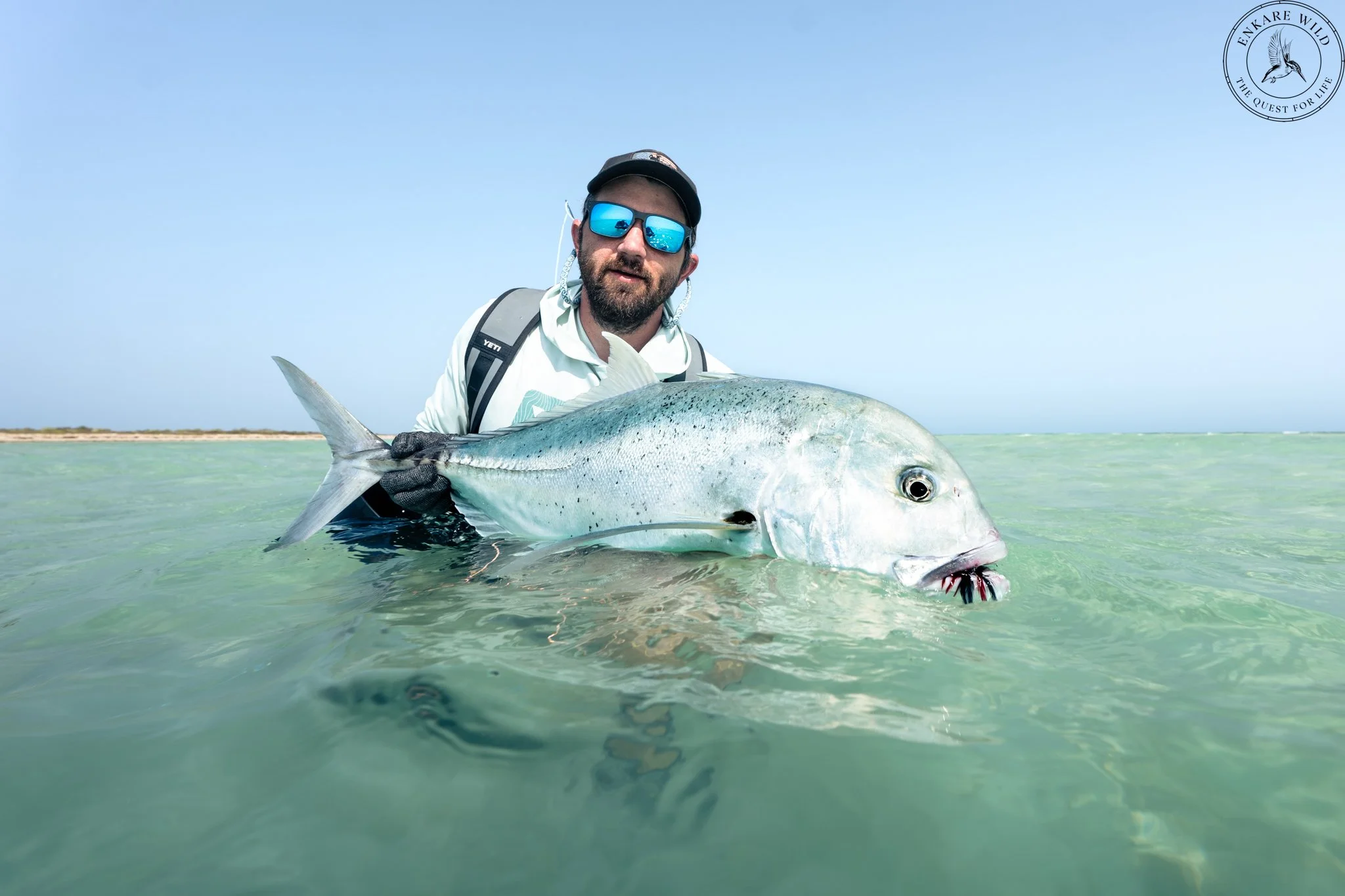 The week ended with an unforgettable moment. Riley made an impeccable cast to a GT that ate confidently and came to hand after a clean fight. His first GT on fly at eighty five centimetres. A belter of a fish and a moment that reminded all of us why we bring people to wild places like Eritrea.