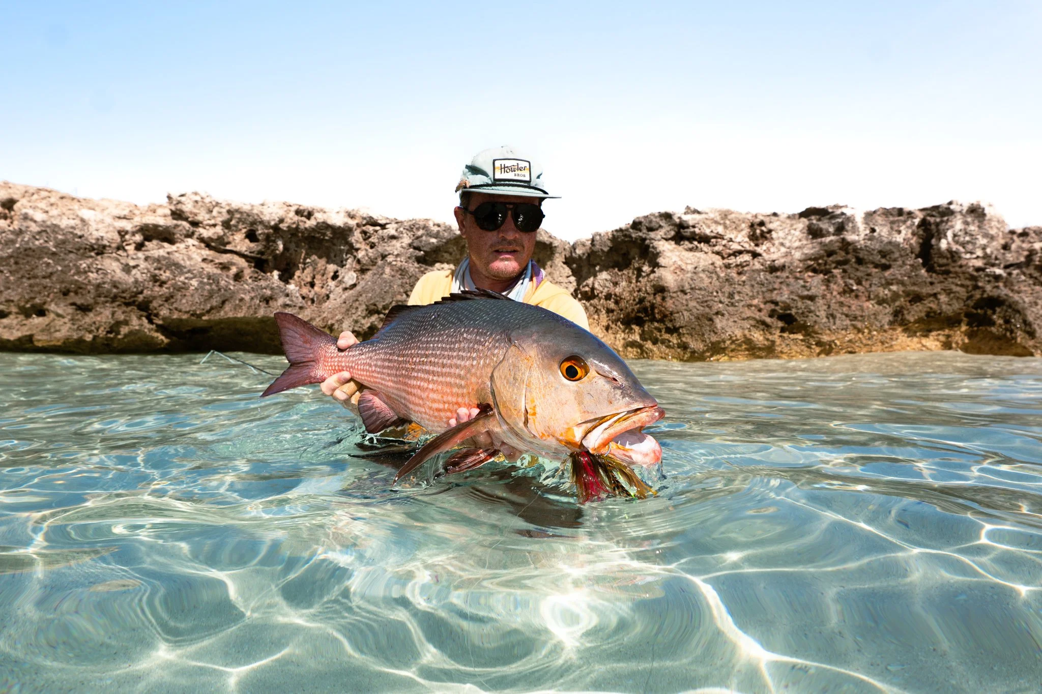 Dave had a hunch about a section of white sand flat. Minutes later we heard him shouting. We ran half dressed, socks missing, toothbrushes in mouths. Dave stood shell shocked, rod in pieces. He’d just had a 125cm plus GT eat his fly at the bank. In the chaos the line tangled, sections of rod flying, and the fish made the drop off. Gone.