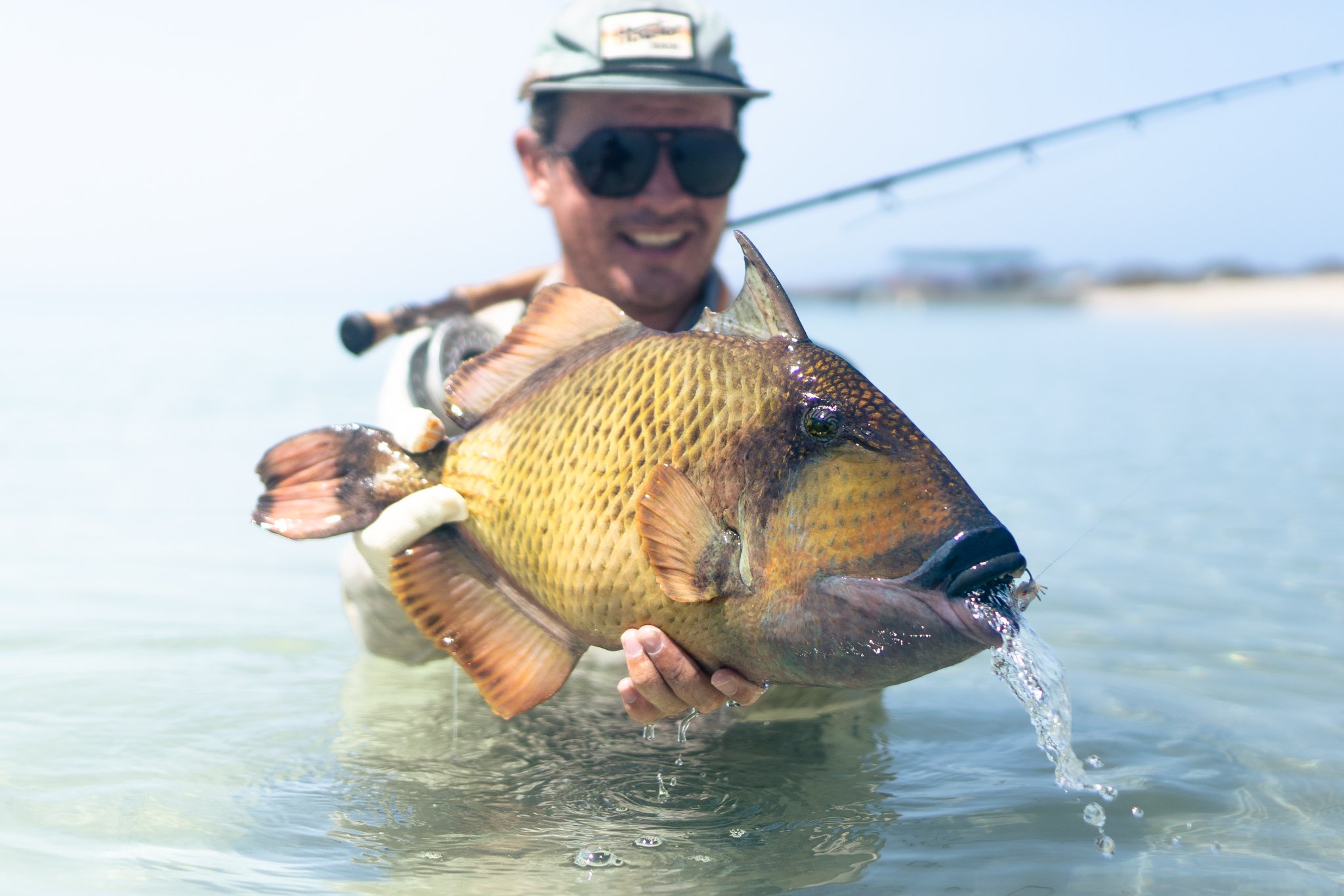 As we approached, the school materialised, two hundred plus fish circling in tight formation. While lining up, I saw a massive trigger pass through. Dave and I struck a deal: if I could get a shot at the trigger without spooking the permit, it was mine. A Hail Mary cast later and the trigger was on, only to charge straight into the only bit of coral in sight. Lost.