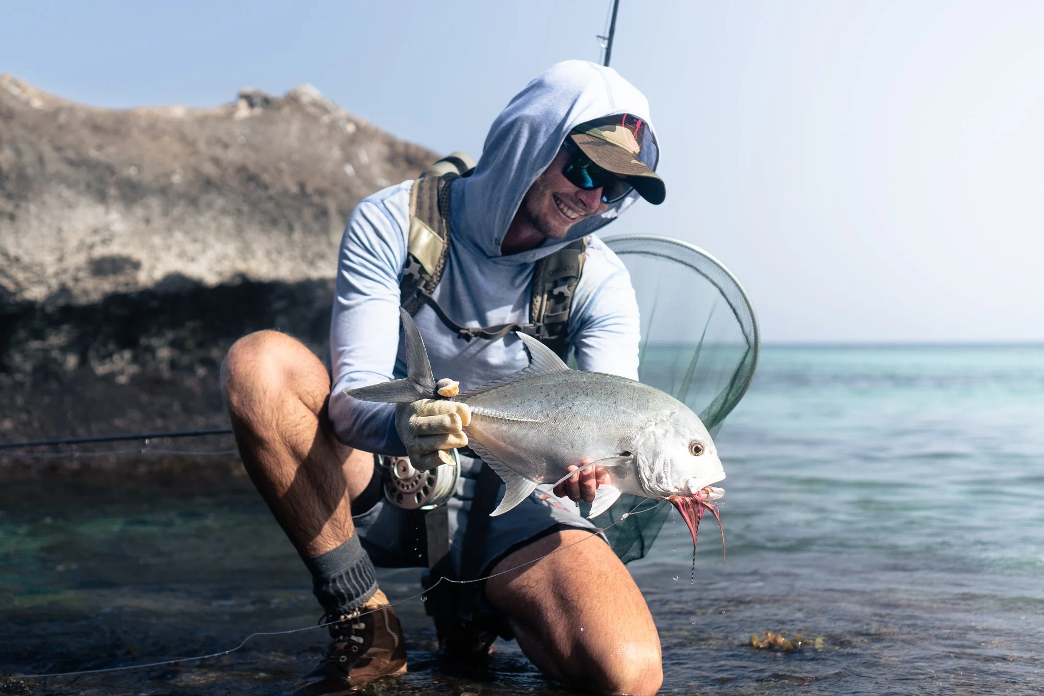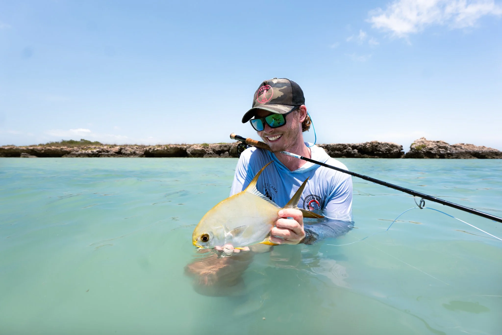But the permit were still there. Dave stepped up first. One lit up on his fly and he came tight, the first Axum Flats permit on fly. Possibly the first in the entire country. Moments later it was my turn. Cast, strip, eat. My first ever permit, hands trembling as I tailed it. This is a moment I will never forget…