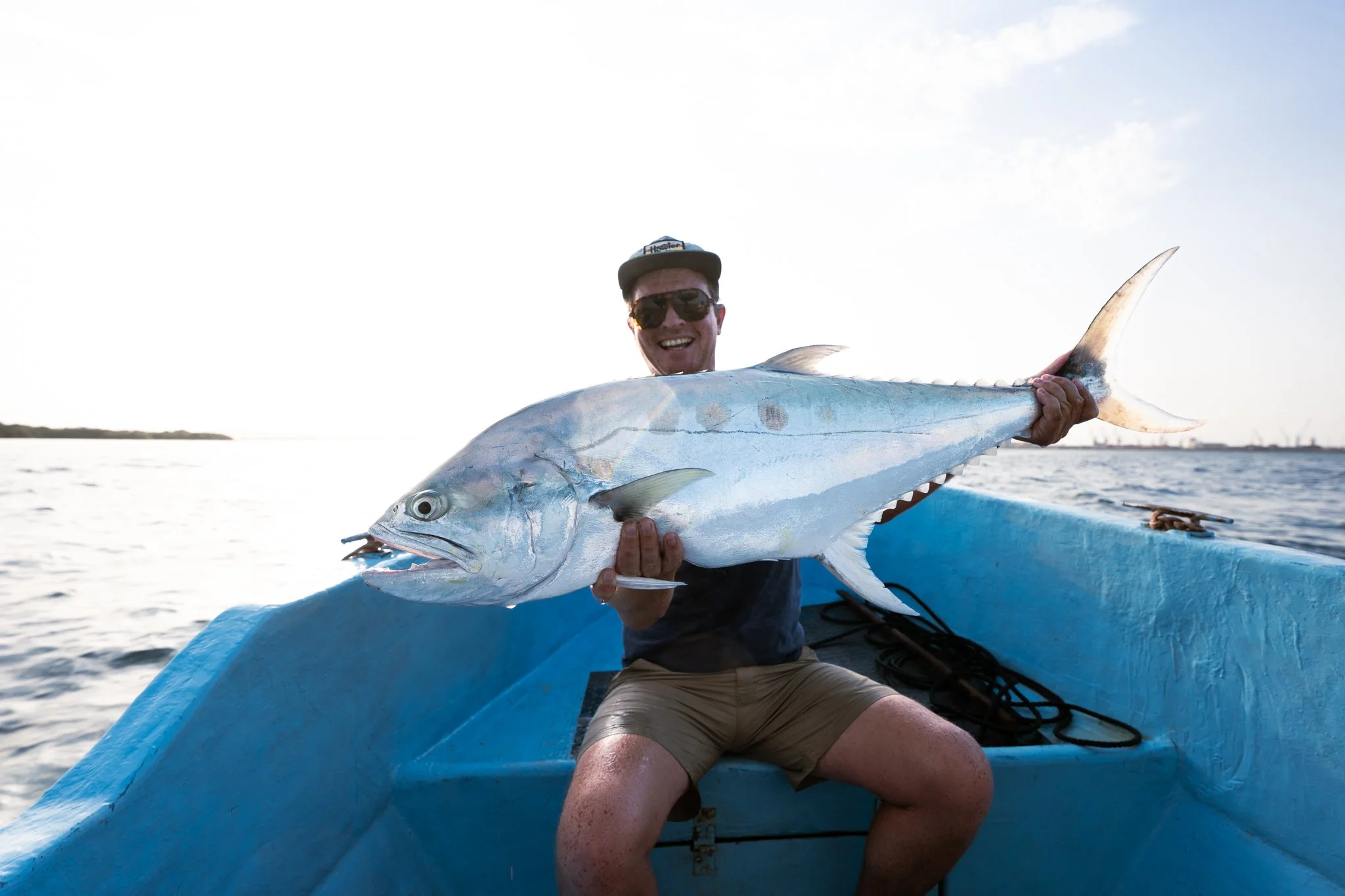 That afternoon, we headed back to port to refuel. Supplies stowed, we took a dinghy to the mouth of the harbour with a bottle of scotch. Between laughter and dredges, Dave came tight. Line screamed, the fish pulled deep. Silver flashed, then revealed itself, a monster queenfish. We had no idea they even lived here. A welcome curveball.