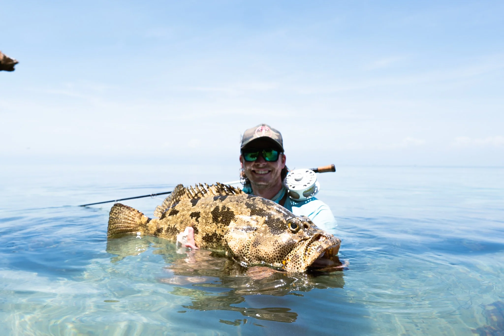 Dave shook it off like the pro he is. We pushed on. I lobbed a long cast from a rocky ledge, stripping blind. From nowhere a huge grouper exploded from coral and smashed the fly. The fight was short and brutal, but the fish hit the sand. Later Dave made amends with a solid bohar and a solid titan trigger. The day closed with bruises, cuts, but satisfaction in spades.